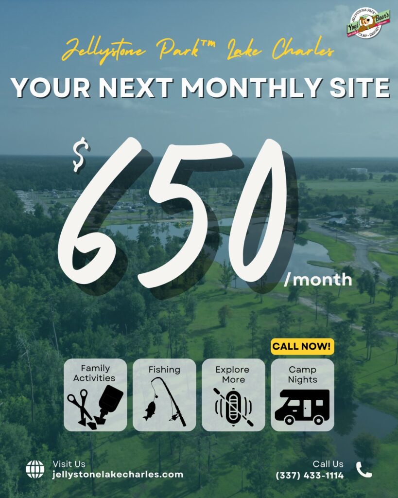 Yogi Bear’s Jellystone Park™ Camp-Resort in Lake Charles, Louisiana, is a perfect home away from home. More than just a parking spot, our welcoming community and convenient on-site amenities offer the perfect opportunity for an enjoyable extended stay. Bring the family to enjoy activities like swimming, fishing, and themed events.